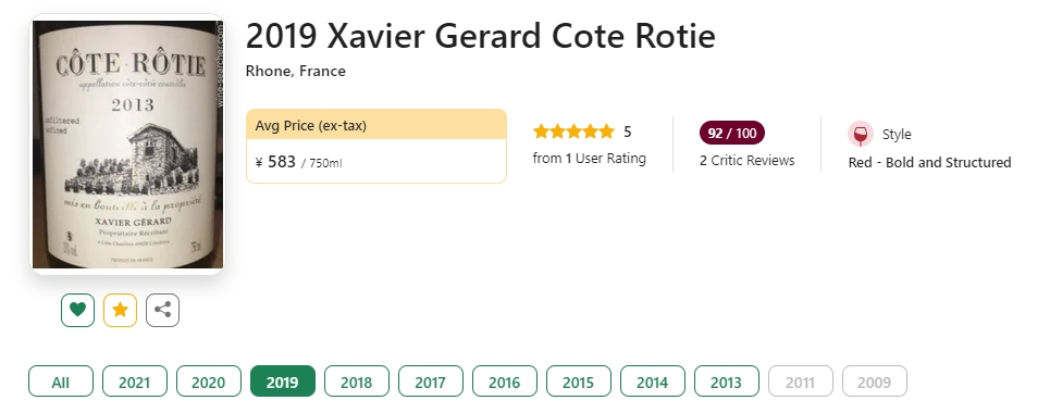 【友商又退出了!均价86折!世纪大年罗蒂丘丨Decanter北隆盲品Best酒款】Xavier Gerard Cote Rotie 2019