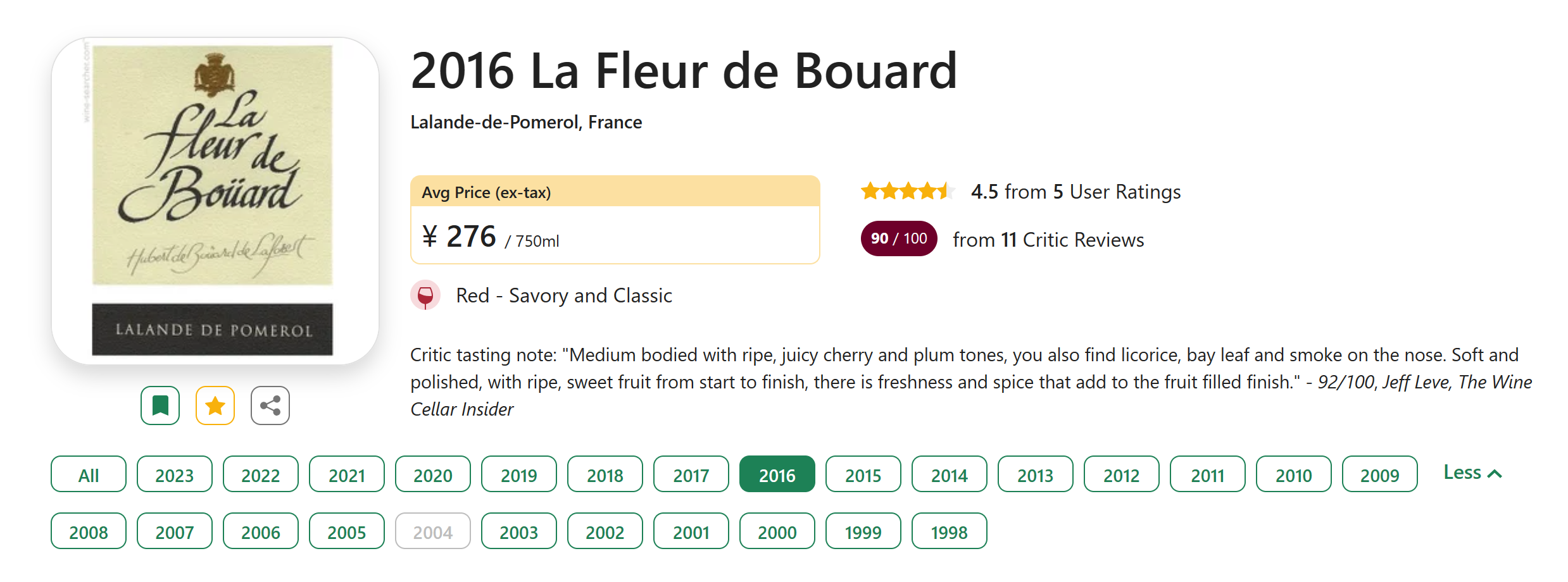 【金钟平替右岸名庄 | 低均好价大年正牌】La Fleur de Bouard 2016