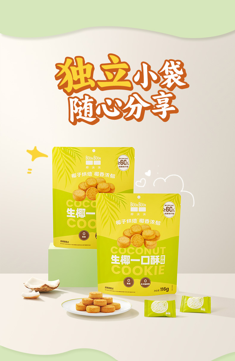 BoonBoon椰满满是国内以椰子创新原料为研发的健康零食品牌!