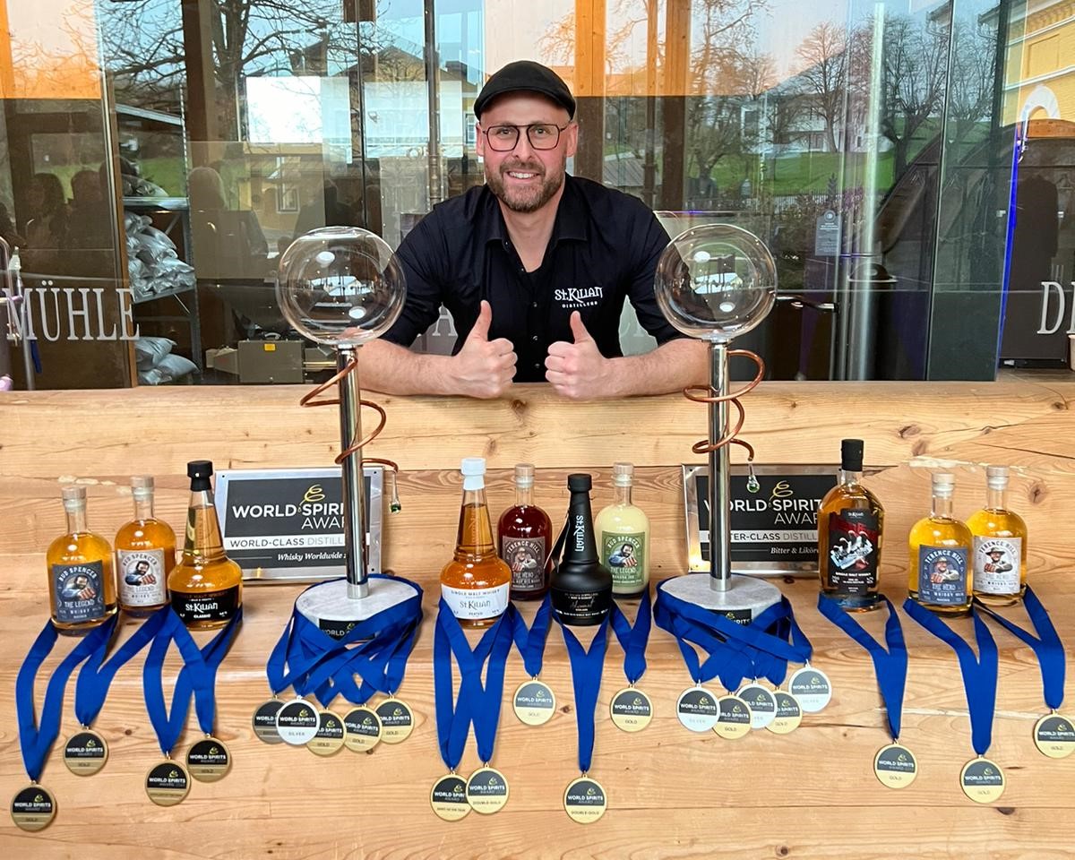 ST. KILIAN威士忌酿酒厂位于下弗兰肯地区美因河畔米尔滕贝格附近的吕德瑙,生产的特级威士忌和利口酒曾在全球至负盛名的比赛中获得 200 多枚金牌。在 “全球威士忌 ”类别中,ST. KILIAN获得了 “2024 年世界蒸馏厂 ”的至高荣誉,以及 “2024 年大师级蒸馏厂”的称号。