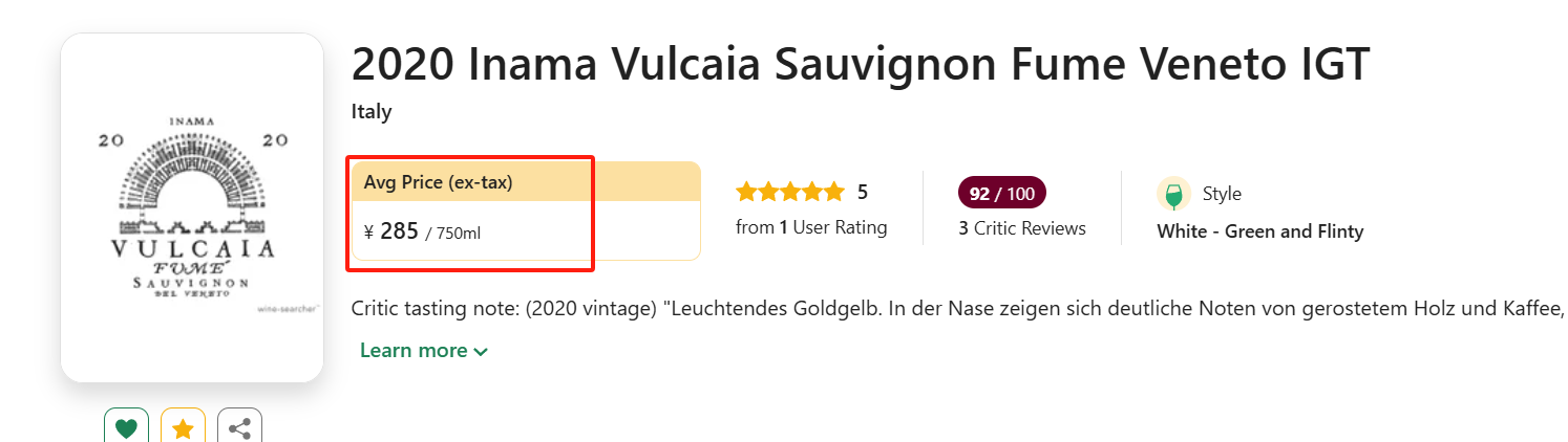 2020年份表现非常出色,不仅斩获JS 94,Falstaff 93,RV 92高分好评,更有Bibenda 5串葡萄至高肯定,在Vivino上近9000人给出4.2高分口碑!