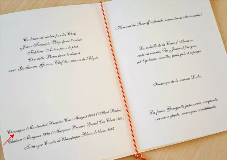 值得一提的是,在2019年法国爱丽舍宫国宴上,Albert Bichot的名字赫然出现在酒单上,一款2016年份的Chassagne-Montrachet 1er Cru “Morgeot”被选用为当晚的国宴用酒!