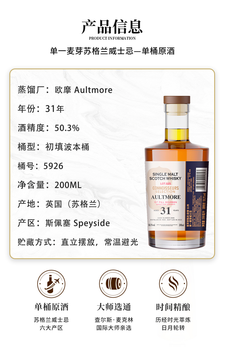 【樽享旗下系列酒款,大师亲鉴·时间精酿】鉴赏家单一麦芽苏格兰威士忌系列品鉴 200ml 高年份任选