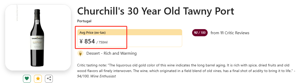 【国均5.8折!W&S百大名庄,30年桶陈高分金奖波特!】Churchill's 30 Years Old tawny Port 500ml 礼盒装