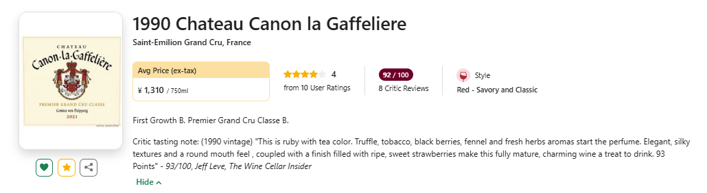【国均9.1折!WS百大同款!右岸名庄,传奇大年!】Chateau Canon la Gaffeliere 1990