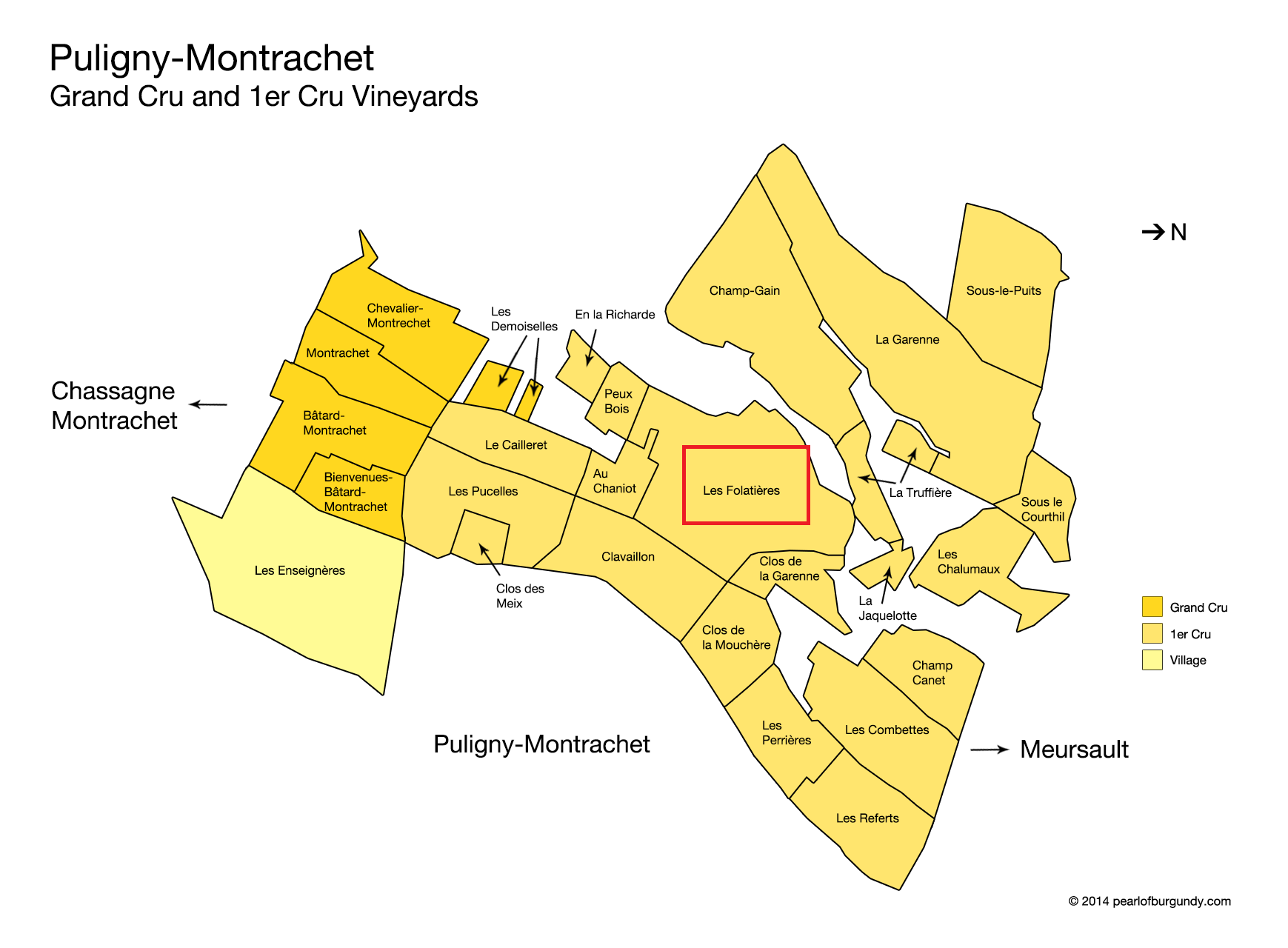 勃艮第大家Clive Coates MW在他的The Wines of Burgundy一书中详解道:“Les Folatieres共17.65公顷,其中包括了三块出名的园中园:En La Richarde、Peux Bois和Au Chaniot,但一般不以园中园名称发售。Les Folatiere的酒风饱满强劲、充满浓郁的矿物气息,果味充沛丰腴,FIRST口便能摄魄人心,是典型Puligny风格的极好表现!”
