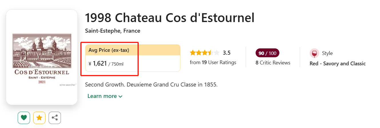 【低均好价!超二名庄正牌,98稀缺老年份!】Chateau Cos d'Estournel 1998