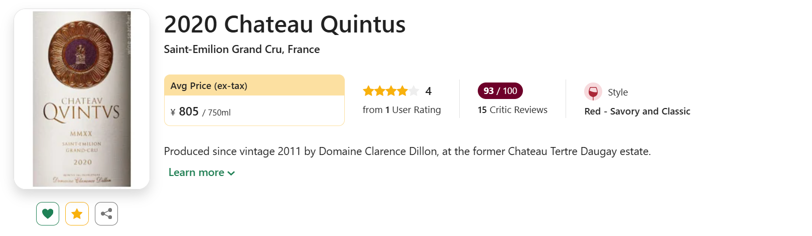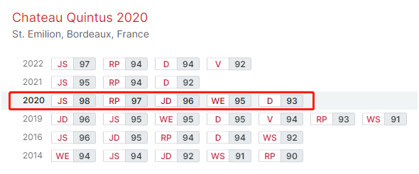 【侯伯王美讯同门!评分最高年份】Chateau Quintus 2020 直降89元!