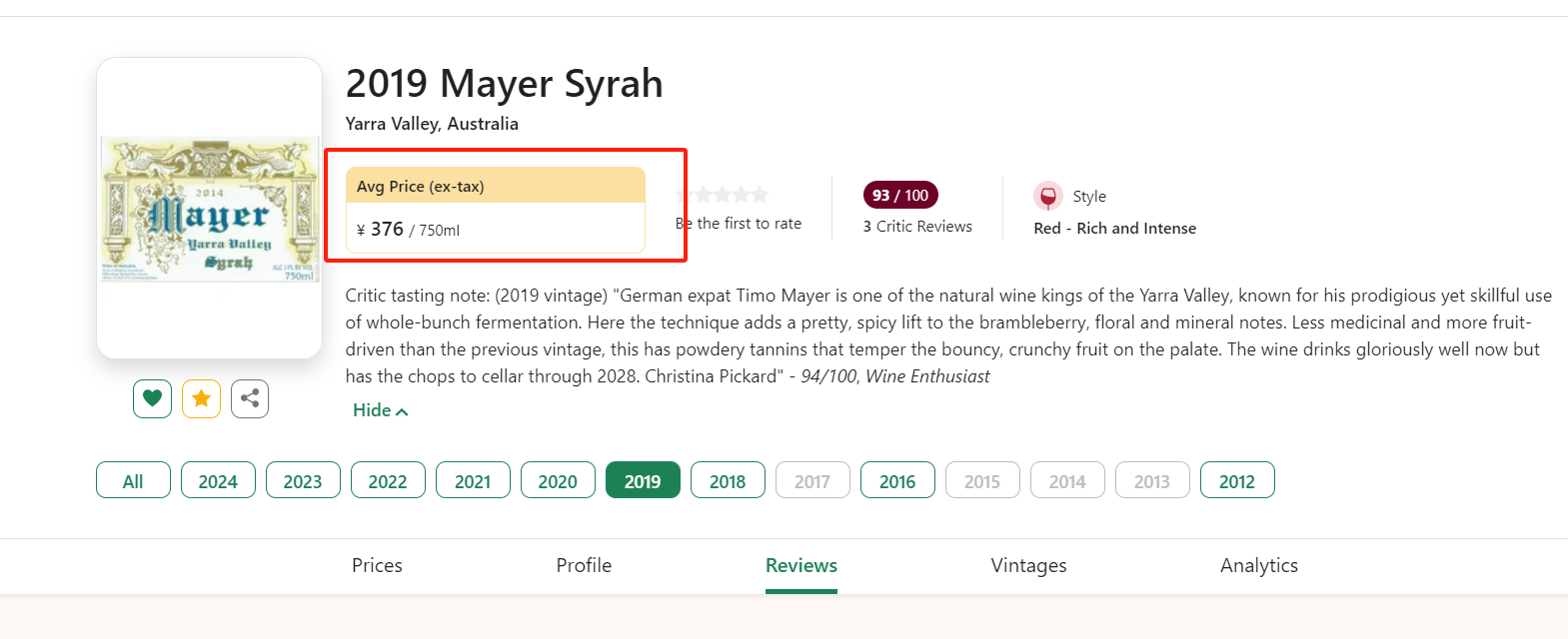 Wine Companion:“Mayer酿造的黑皮诺是Yarra Valley至棒的,即便放眼整个澳洲也是出类拔萃,在我品尝的澳洲Pinot里,其品质至今无人能及。”