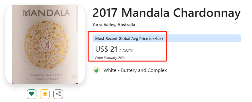 【国均6.4折!澳洲五星名庄,勃艮第大区平替霞多丽!】Mandala Yarra Valley Chardonnay 2017 单支/双支/十二支原箱