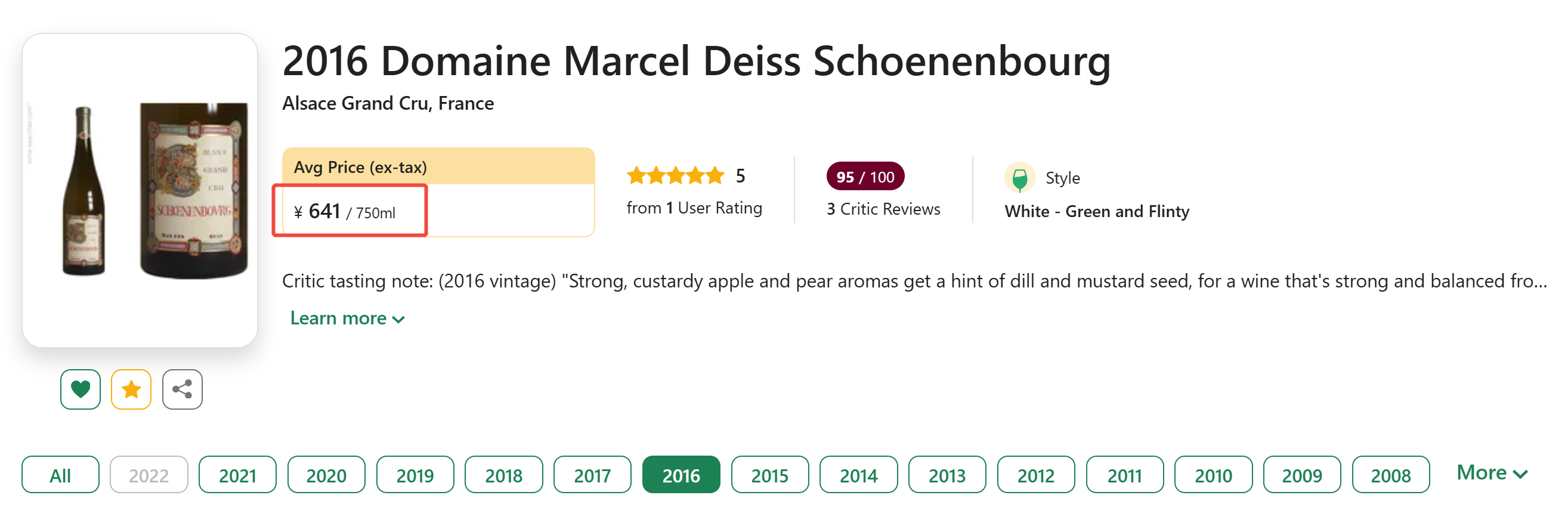 【国均93折!苔丝美人高分钢裤!】Domaine Marcel Deiss Schoenenbourg 2016