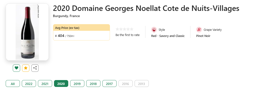 【低均好价!Jayer与Rouget家族的传承!大年高水准夜丘村级!】Domaine Georges Noellat Cote de Nuits-Villages 2020