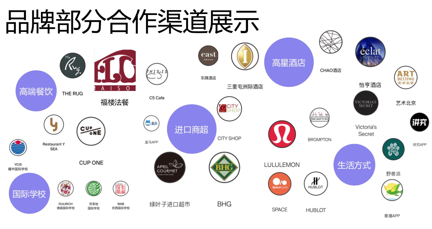 1、已与全国50+家高端餐饮(含北上广区域黑珍珠餐厅)、30+家国际五星级奢华酒店、40+家高端连锁咖啡厅、50+家高端进口商超、10+家品质类生活方式,共计达200+家品牌达成销售合作。
