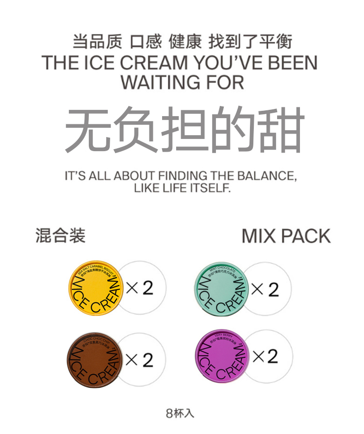 【低卡与美味并存,放肆炫它!】奈斯NICE CREAM 减糖轻卡冰淇淋 4口味组合装 80g*8杯(盒装)