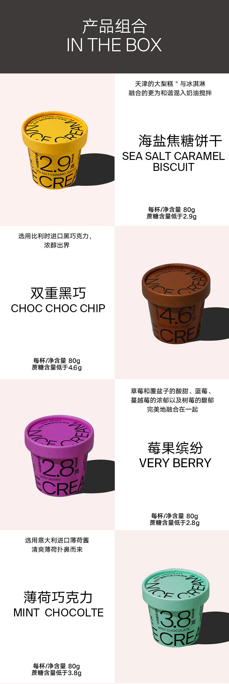 NICE CREAM 减糖轻卡冰淇淋 4口味 80g*8杯