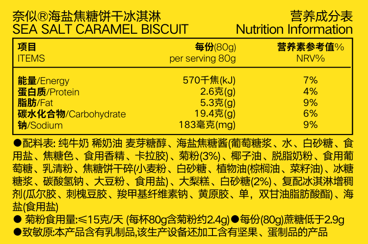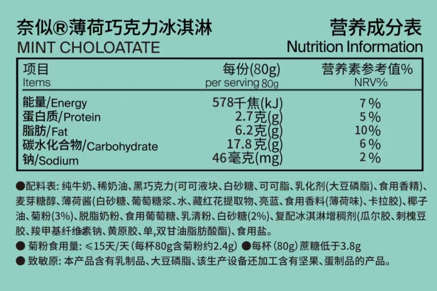比普通冰淇淋少了近50%的卡路里和70%的糖。