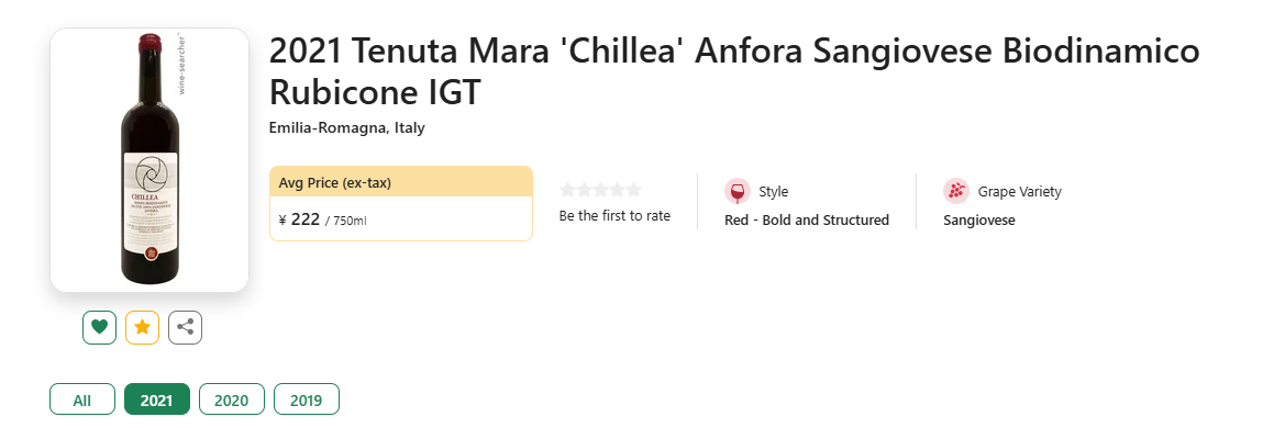【低均好价!意大利百大杰出酒庄,陶罐熟化桑娇维塞!】Tenuta Mara 'Chillea' Anfora Sangiovese Biodinamico Rubicone IGT 2021