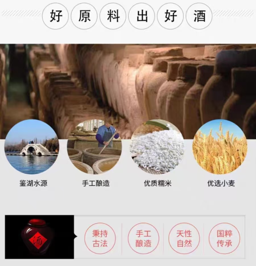 位于鉴湖源头的鉴湖酒坊,更有得天独厚的优势。厂区倚鉴湖而建,南大门开门见湖,汲取门前鉴湖源头活水酿酒。酒坊传承古法,坚持传统工艺,一冬一酿,手工酿造。