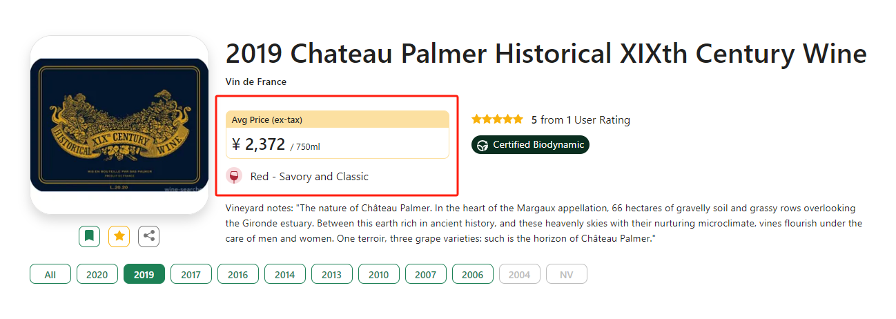 【宝马出品稀有珍酿,重现19世纪经典!】Chateau Palmer Historical XIXth Century Wine 2019