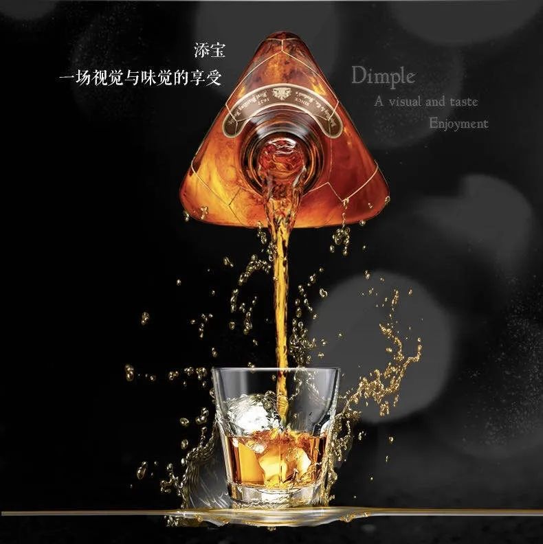 值得一提的是,Dimple在1893 年创新使用如酒窝般造型的三棱瓶身,外圈被金线环绕,圆润晶莹,极具美感,并于1958年取得美国专利。如今,已是其标志性外观,极受饮家喜爱。