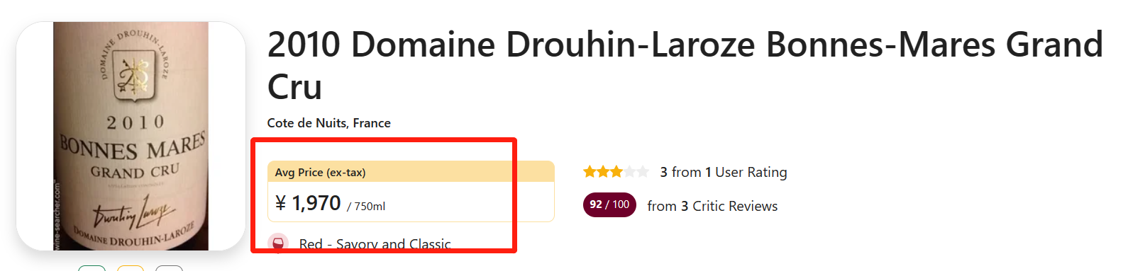 本次2010年份Bonnes-Mares,除了配额少到只有个位数之外,其余都是亮点…价格也是低均!