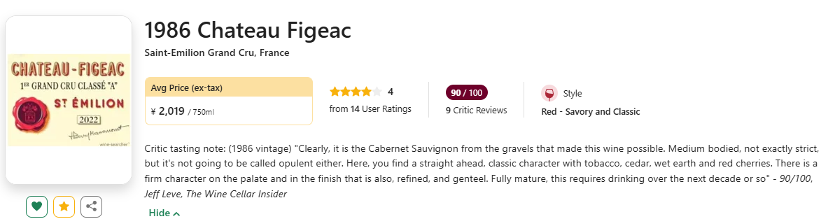 【微瑕捡漏!直降200!低均好价!飞卓正牌老年份!】Chateau Figeac 1986 现货
