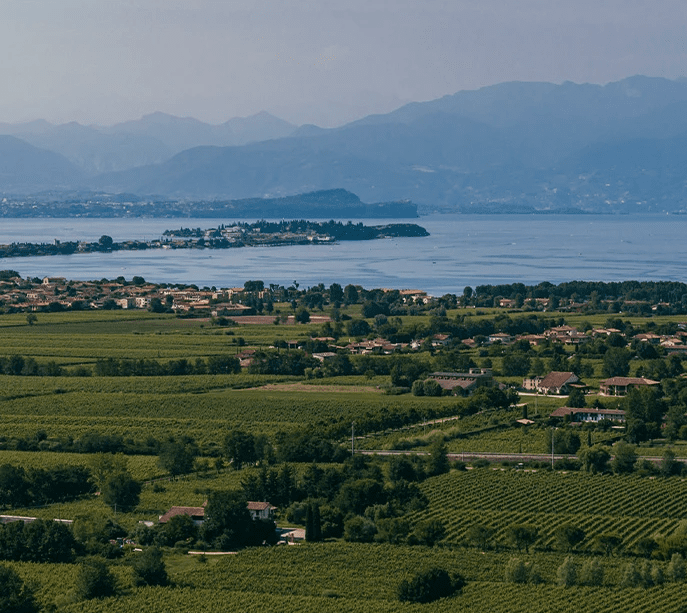 Lugana产区位于威尼托与伦巴第的交界处,临靠意大利境内至大的湖泊lagodi Garda,湖泊在阿尔卑斯山和波河河谷之间,土壤中多为富含矿物质的白垩石灰石和典型的冰碛黏土,酿酒葡萄主要是当地特有品种Turbiana葡萄。这种独特的地理和气候环境,让Lugana产区的白葡萄酒十分具有特色。
