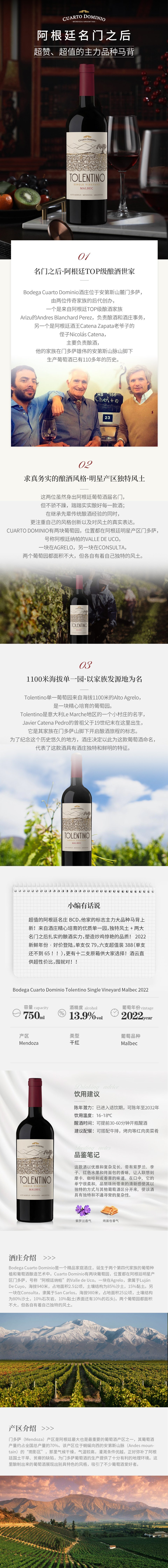 阿根廷名门卡托多米诺“托伦蒂诺马尔贝克”干红葡萄酒 2022