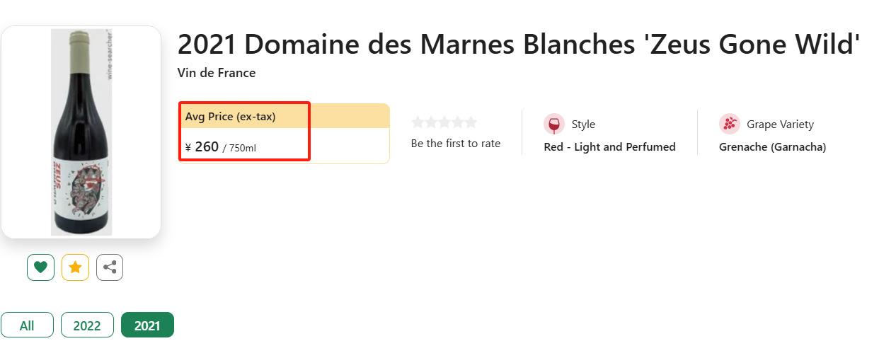 【国均5折!汝拉宝藏精品庄,“众神之王”歌海娜!】Domaine des Marnes Blanches 'Zeus Gone Wild' 2021