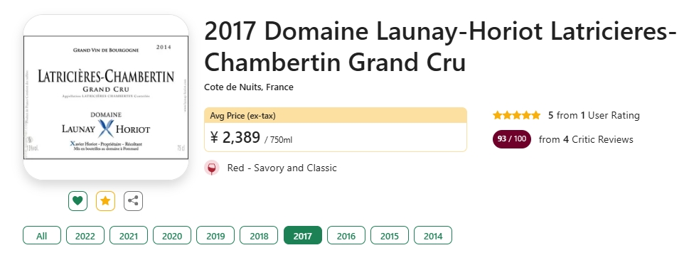 【拉特歇尔-香贝丹丨瑰丽“精粹”】Domaine Launay-Horiot Latricieres Chambertin Grand Cru 2017