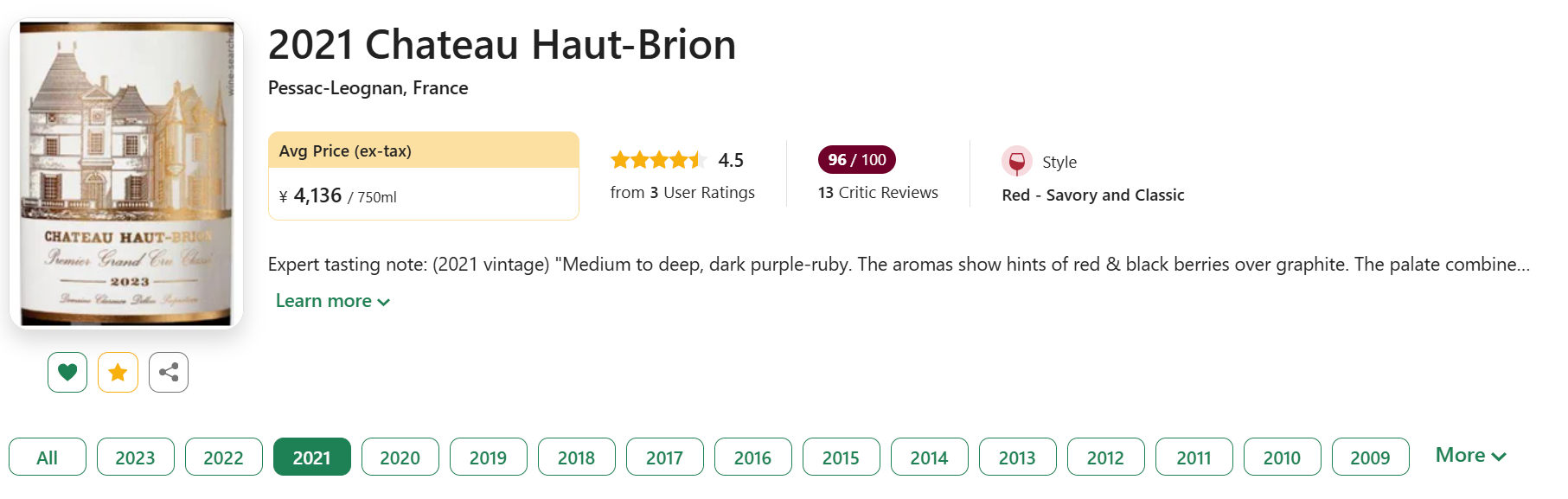 【白菜价波尔多!低均近600+!满分侯伯王正牌!】Chateau Haut-Brion 2021