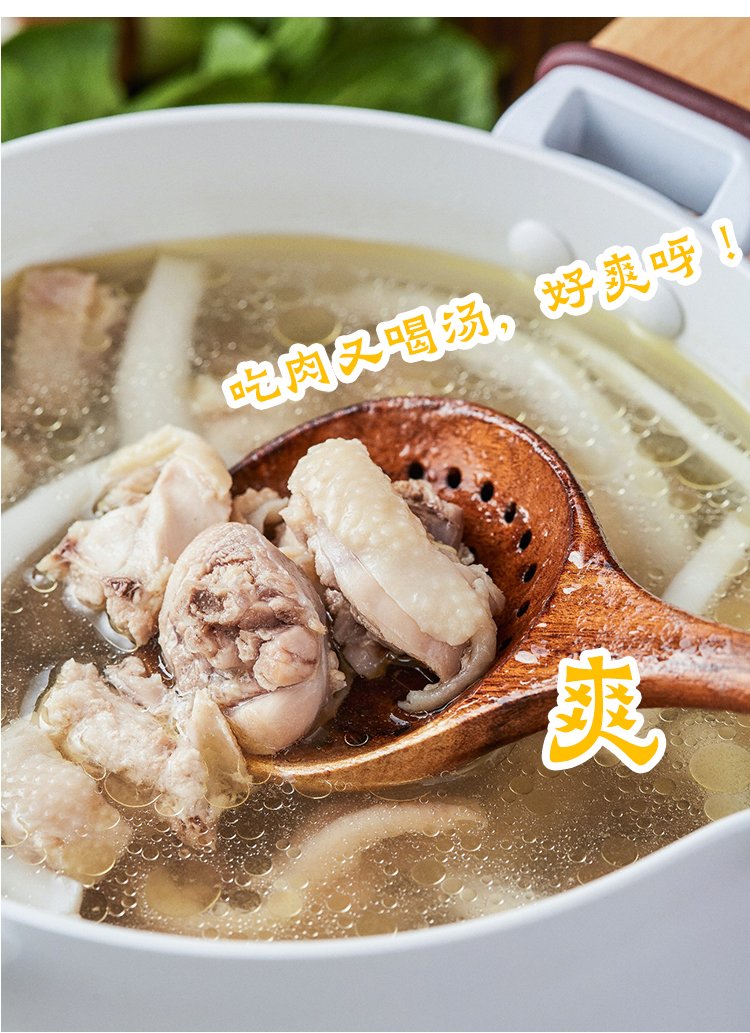 汤底有了灵魂,鸡肉提升了鲜味,一口鲜甜回甘的汤,足以洗去身体的疲惫,愉悦感从嘴里胃里漫入心头,简直就是打工人的“续命汤水”。