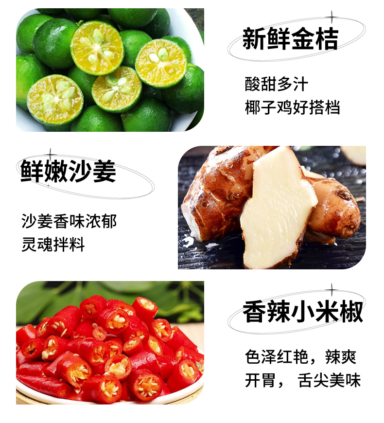 蘸料包:金桔4颗、辣椒3根、沙姜蓉35g
