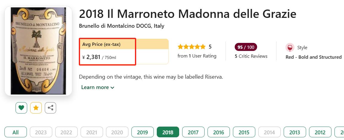 今年最新发布的Wine-Searcher2024十大意酒第一名!