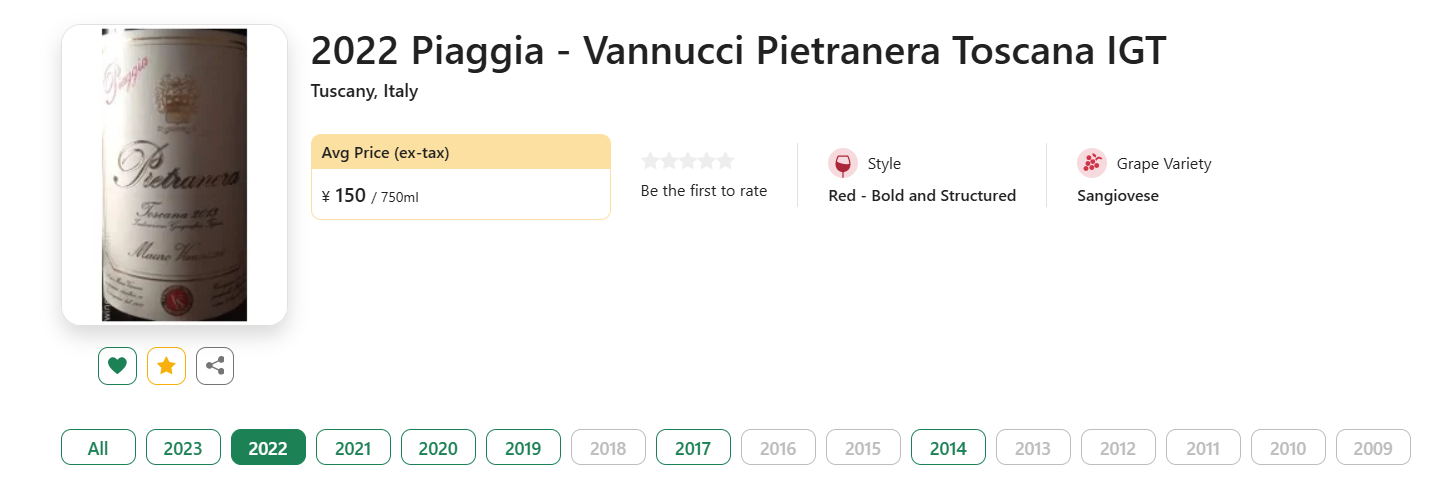 【滴血特卖!均价八六折,限量配额酒】Piaggia - Vannucci Pietranera Toscana IGT 2022 隐藏的宝藏,强烈推荐