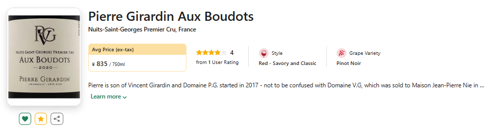 【低均好价!勃艮第“天之娇子”PVG,NSG别致一级园!】Pierre Girardin Aux Boudots Nuits-Saint-Georges Premier Cru 2020