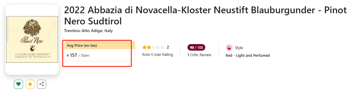 【传承9世纪修道院,超值冷凉风黑皮诺!】Abbazia di Novacella-Kloster Neustift Blauburgunder - Pinot Nero Sudtirol 2022