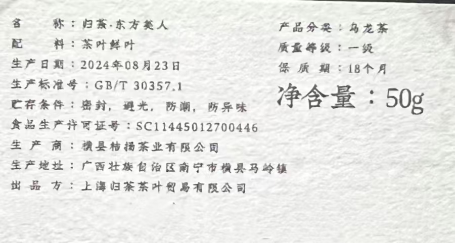 【如花在喉的“东方美人”】东方美人 白毫乌龙 一级乌龙茶 50g