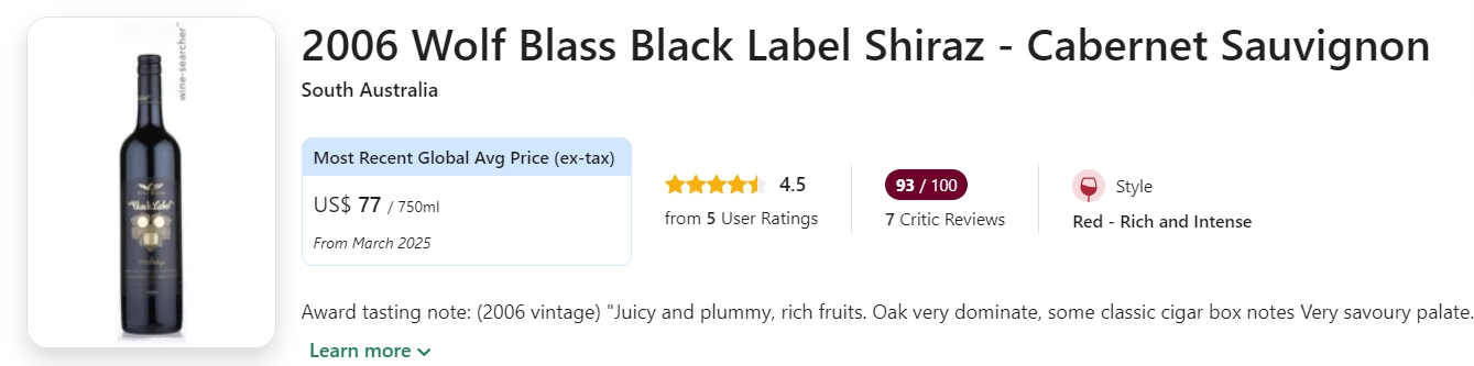 【滴血特卖,国均4折!核爆价老年份“纷赋”黑牌混酿!】Wolf Blass Black Label Cabemet Sauvignon Shiraz Malbec 2006 (螺旋盖)