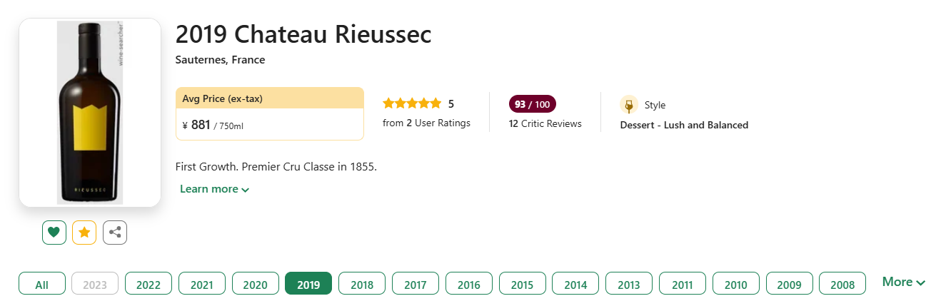 【国均5.6折!苏玳贵腐酒一级庄!】Chateau Rieussec 2019 莱斯古堡甜白 腰斩直降420元!