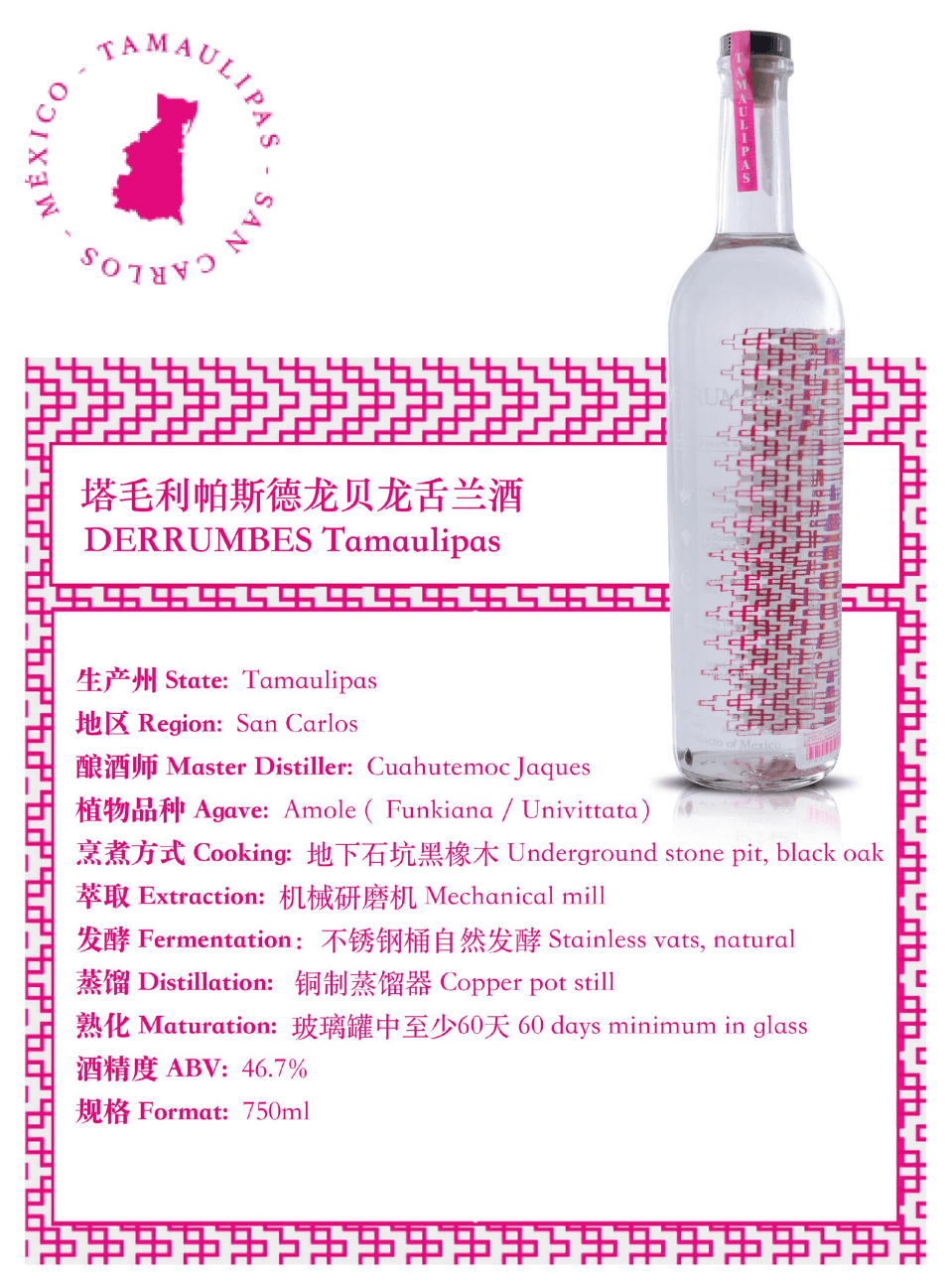 酒款由梅斯卡尔酒大师Cuauhtémoc Jaquez用Tamaulipas州特有的Funkiana、Univittata以及Americana这3种龙舌兰混合酿制而成,口感甘甜、干爽、浓郁,具有多层次的风味和香气,气势磅礴。