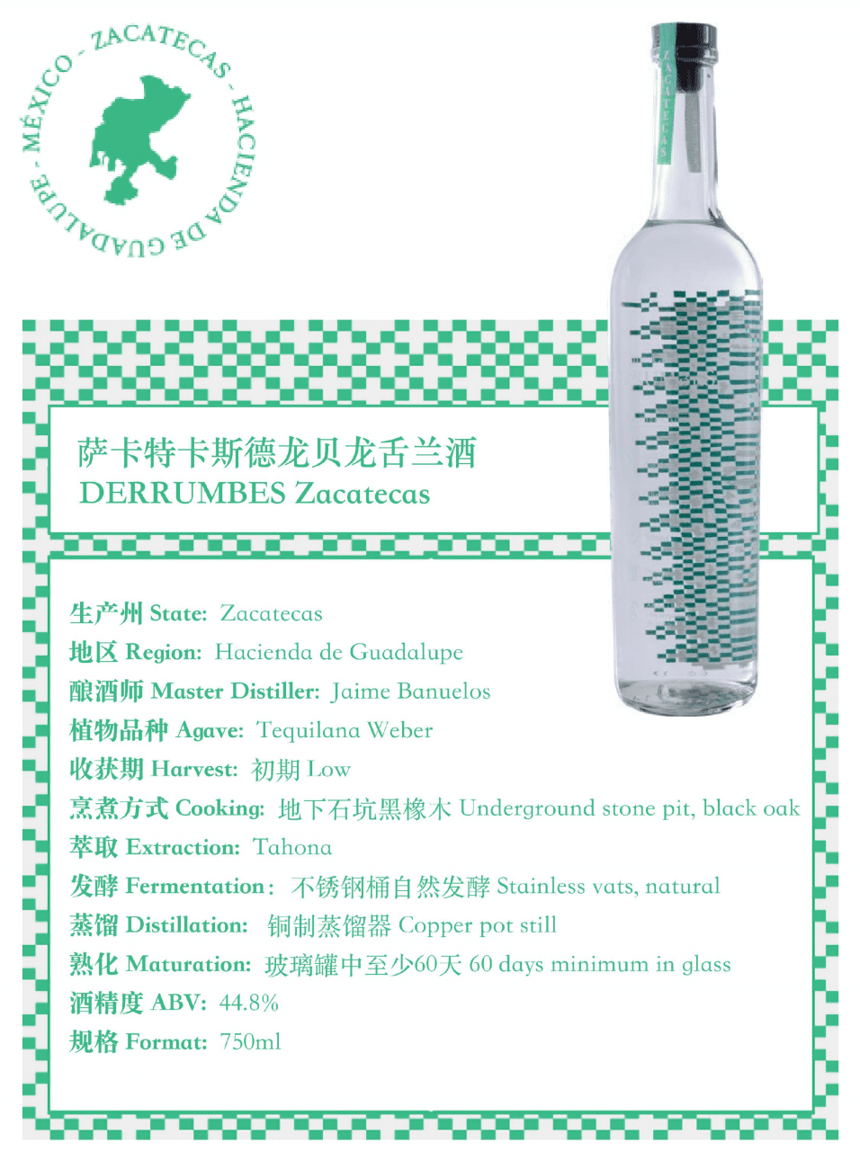 使用Zacatecas州Huitzila村的Tequilana蓝色韦伯龙舌兰酿造。