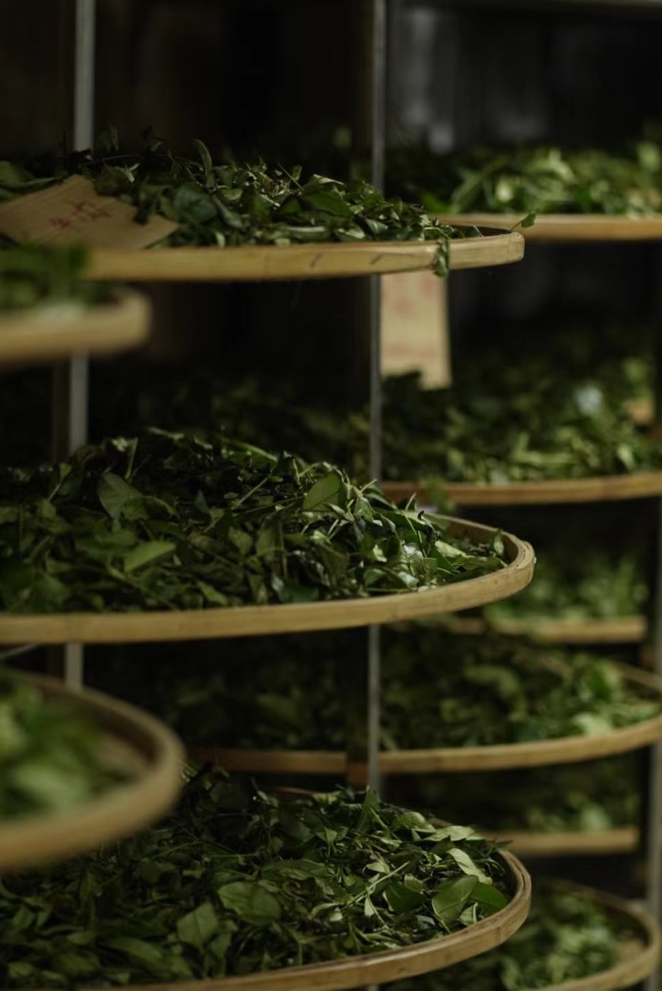 该款“山有木兮”是手工做茶,做青都是在深夜,采摘完后日光萎凋,当失水率达到10%-16%时,大部分青叶才达到标准,进入做青过程。