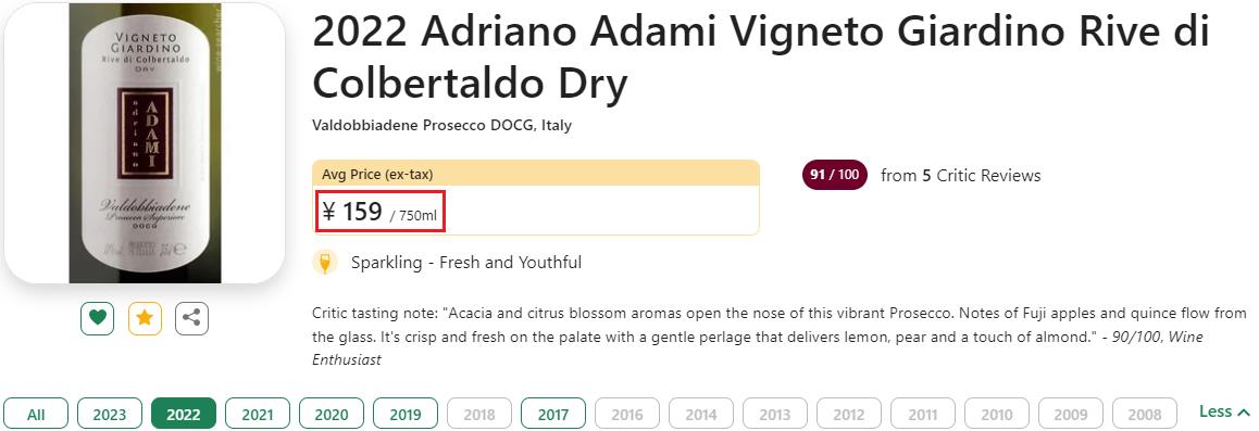 这款来自Valdobbiadene产区的佼佼者、至有名气的TOP酒庄、W&S“世界百大酒庄”Adriano Adami的Vigneto Giardino单一园年份Prosecco,就频频获得各种高分和权威奖项,以及大红虾三杯奖的多次肯定!