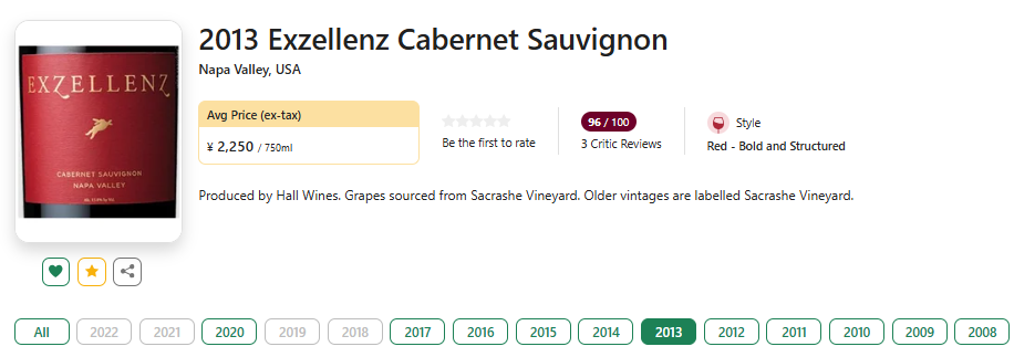 【清仓直降900!国均7.9折!RP 100满分!世纪大年,纳帕膜拜赤霞珠!】Hall Winery Exzellenz Cabernet Sauvignon 2013 现货