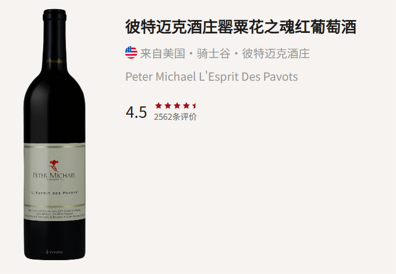 帕克《世界TOP级的酒庄》书中的加州22大名庄之一!膜拜酒庄Peter Michael的Les Pavots单一园波混来啦!2014适饮年份,仅售WS国际不含税均价的7.2折!
