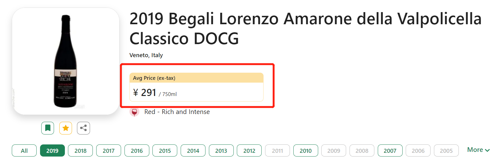 【国均飞涨,酒云只要8.5折!好评如潮Amarone更优年份闪亮来袭!】Begali Lorenzo Amarone della Valpolicella Classico DOCG 2019 现货