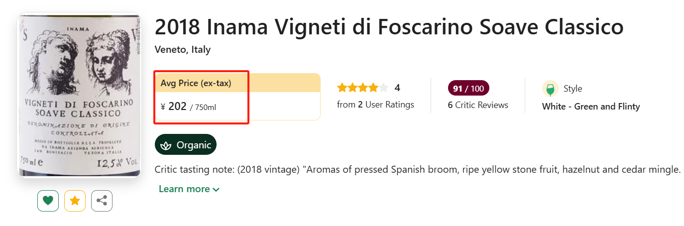 这款Soave同样是采用本土品种Garganega酿造,与前几天上的入门款不同的是: