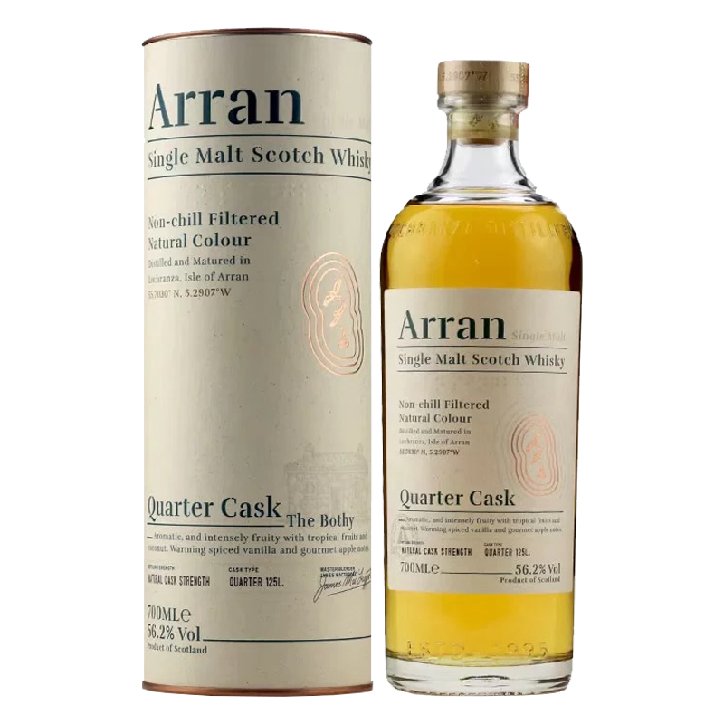 先在初填波本桶中熟成7年,赋予酒体基础的水果与香草风味;随后转入容量仅125升的四分之一桶(Quarter Cask)中继续陈年2年。小桶设计使酒液与橡木接触面积更大,加速风味物质交换,赋予更浓郁的香料和木质调性。最终以56.2% ABV桶装强度装瓶,保留原始风味的复杂度与层次感.