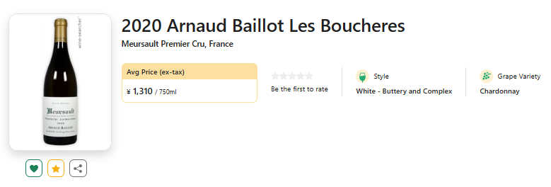 【低均好价!勃艮第实力超新星,大年默尔索一级园!】Arnaud Baillot Les Boucheres Meursault Premier Cru 2020
